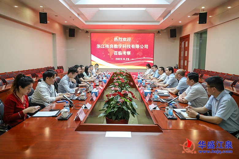 應華盛江泉集團黨委書記、總經理高洪路邀請,5月25日,浙江偉良數字科技有限公司董事長婁偉帶隊來集團考察交流。此次來訪,既是對5月15日至17日集團領導赴浙江偉良數字科技公司考察的回訪,又是雙方達成合作意向后的深度交流。雙方圍繞羅莊區載體空間規劃及華盛江泉未來產城融合新區項目分項論證,共謀合作愿景。羅莊區文化和旅游局局長姚振遠,華盛江泉集團黨委書記、總經理高洪路,沈泉莊黨委書記、華盛江泉集團常務副總經理、財務總監張毅,華盛江泉集團黨委副書記、副總經理孟濤,華盛江泉集團黨委副書記、副董事長付冬明分別陪同考察或出席座談,集團規劃發展部、信息中心、招商管理中心相關人員參加活動。