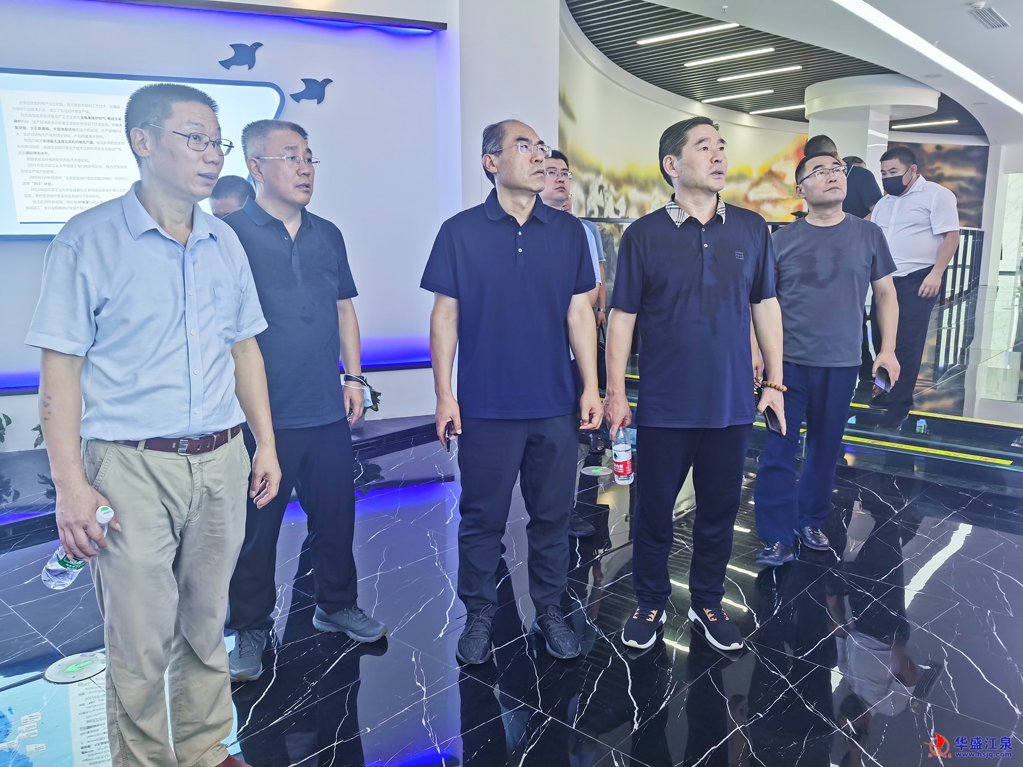 臨沂市人民政府辦公室秘書五科科長王可可、副科長梅波,臨沂市工信局材料產業科工程師劉昊霖,羅莊區投資促進服務中心主任梁洪斌,羅莊區委辦公室主任科員劉愛明,中國國機重工集團有限公司礦山事業部經理葛小榮,華盛江泉集團辦公室相關人員共同參加考察活動。