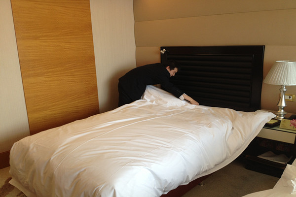 2013年4月11日14時,第三屆“勞動之星”職業技能競賽實踐操作由江泉城承辦的中式做房在江泉城客房部7樓正式啟動。本次比賽共計20名參賽選手,集團公司對比賽全程進行了現場監督。繼今日的比賽項目之后其他工種的比賽也將在近期陸續展開。