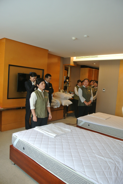 2014年7月17日14:00,由華盛江泉城酒店承辦的華盛江泉集團(tuán)第四屆“勞動之星”職業(yè)技能競賽中式做房項(xiàng)目的實(shí)操比賽在酒店主樓803房間進(jìn)行。參加本次比賽的選手共有43人,經(jīng)理論考核,成績領(lǐng)先的20名員工進(jìn)入了實(shí)操決賽。